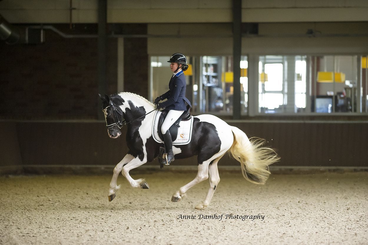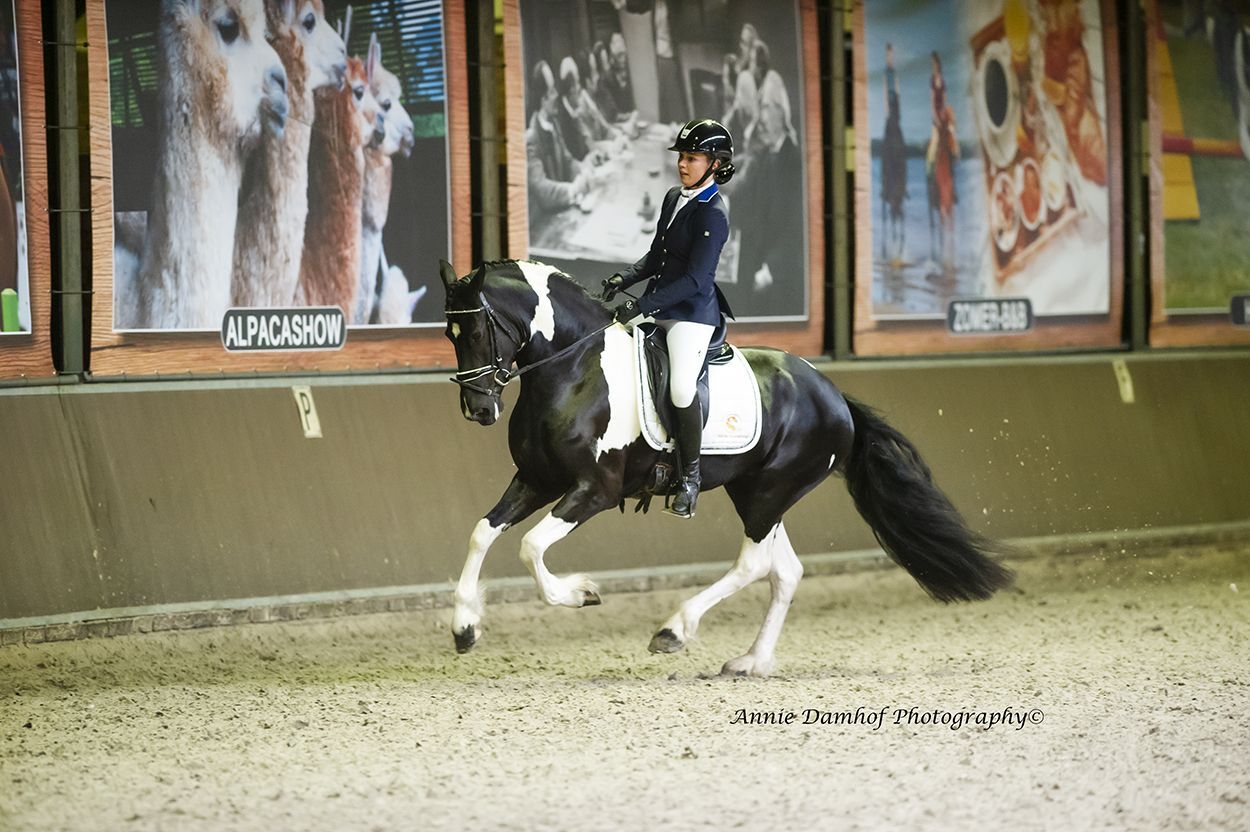 On Saturday April 16, another recording and ibop day was organized by the Barock Pinto Studbook at the Sunrise Stables in Assen. Barend Buysing Damste and Geertje van de Veen stood as jury and Nina Tuinman joined the jury for a day as a candidate to gain experience. Four mares entered the job for studbook registration and there was one mare for grade increase. Thanks to the positively concluded ibop test, the latter became Ster with a first premium later that day. This was the mare Hayke van de Maaikeduinen (King XX02 x Monte 378) of Mrs. Sijbesma. A third premium went to I. Hailey (Elvis BP27 x Nanko XX07) owned by Mrs. Topma. This appealing mare unfortunately lacked development and movement. Juul van de Christina hoeve (Bontfire XX06 x Ulbert 390) of Mrs. Wemmenhove and Hanna van de Mokkenburg (Bontfire XX06 x Abe 346) of Mrs. Bosma-Deen both received a decent second premium. The only first premium went to Jena van ’t Koenraedt (Tymen 503 x Tsjerk 328) owned by Mr Koenders. This youthful, modern and beautifully modeled mare showed three correct basic gaits and got an 8 on legs.